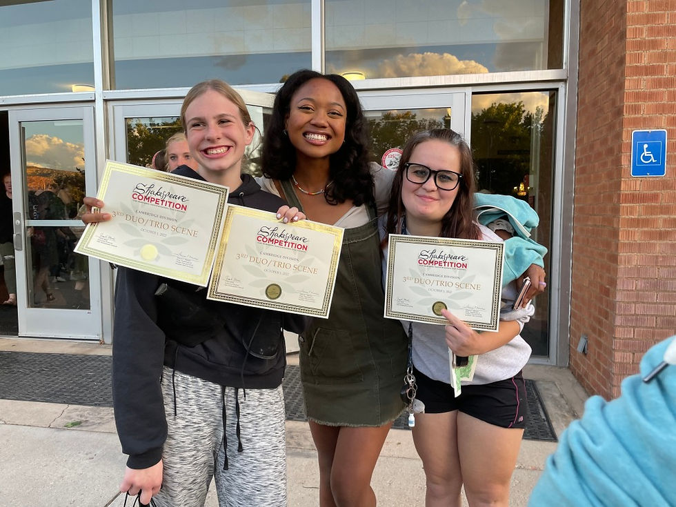 Our performing arts have had quite a lot going for them in the past week as well. Our Color guard won their first competition and were awarded “best colorguard,” “best visual,” and “best sound.” What’s more is that many drama students here at Canyon View performed at Shakespeare Competition, and many did well. Amber Rose, Clara Call, and Marina Paul placed 3rd for their acting duo/trio scene, Ava Lundt, Tanley McCurdy, and Jaeda McCurdy, placed 3rd for their dance duo/trio scene, and Emma Armour even got offered a scholarship to Westminster College. In addition to theater, Several members of Madrigals qualified to participate in All-State choir, a SATB choir composed of 650 of the best choir students in Utah. These students all had the chance to sing in a Grand Festival Concert in the Tabernacle on Saturday evening.